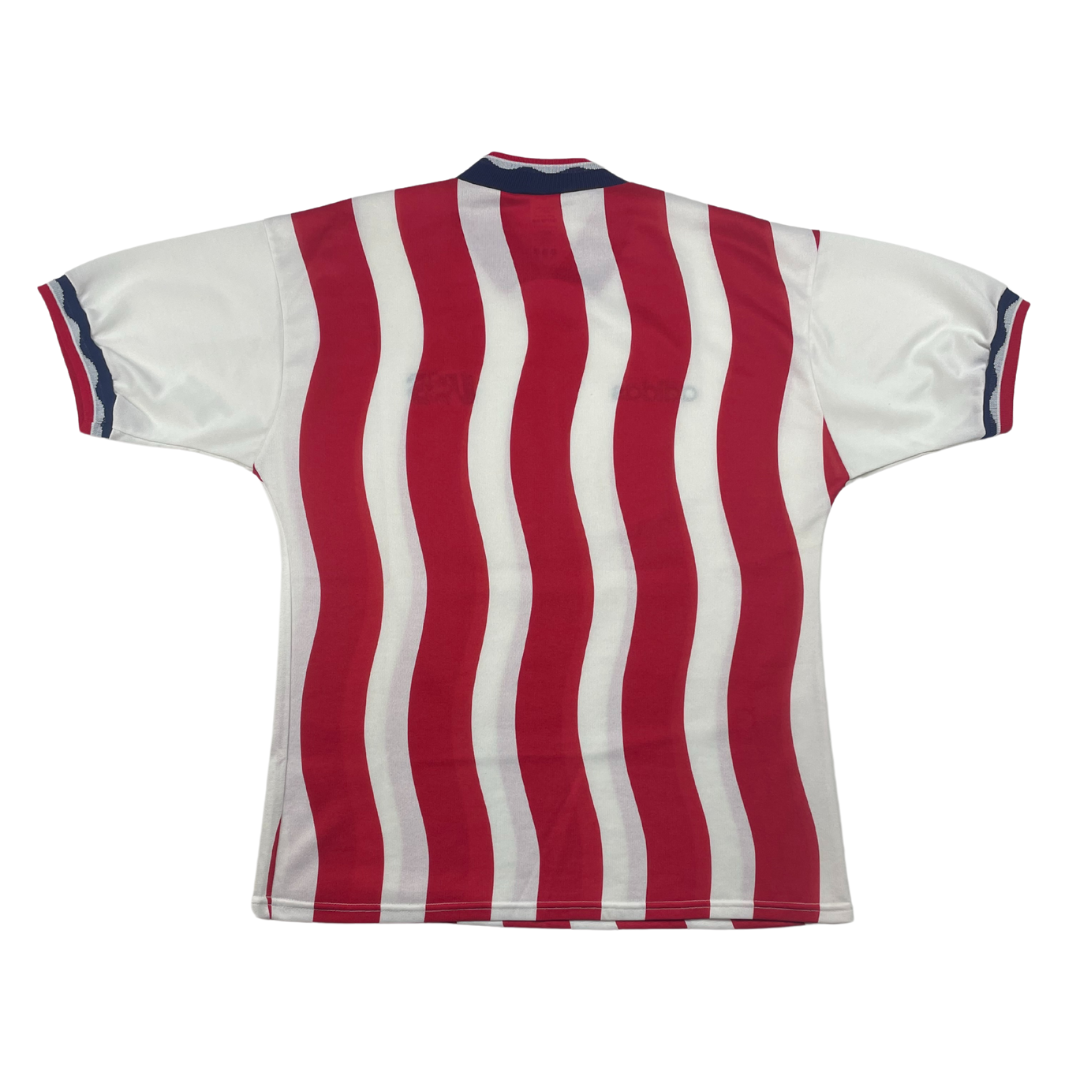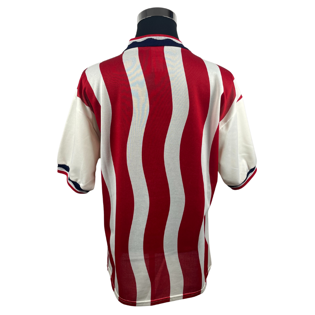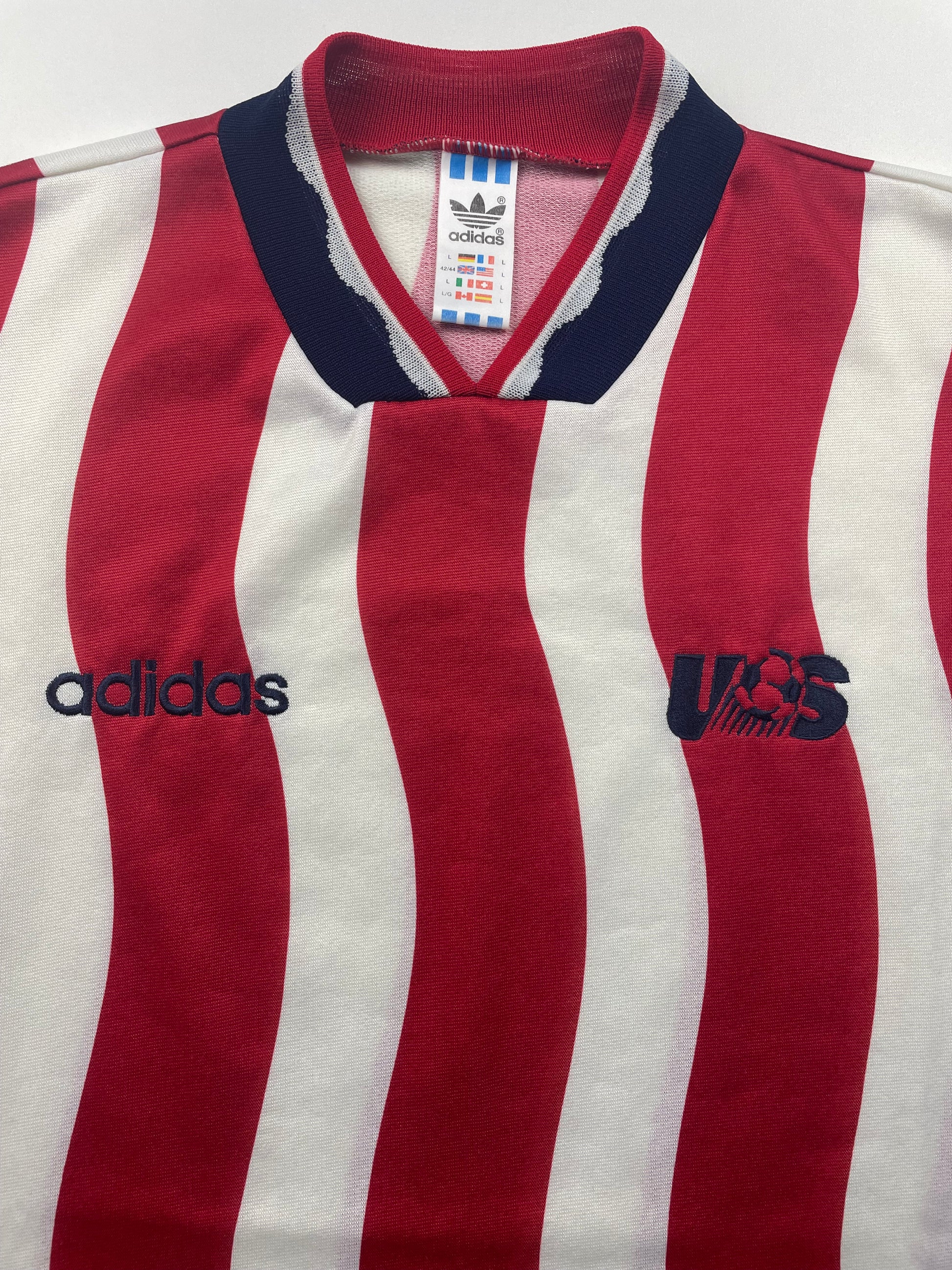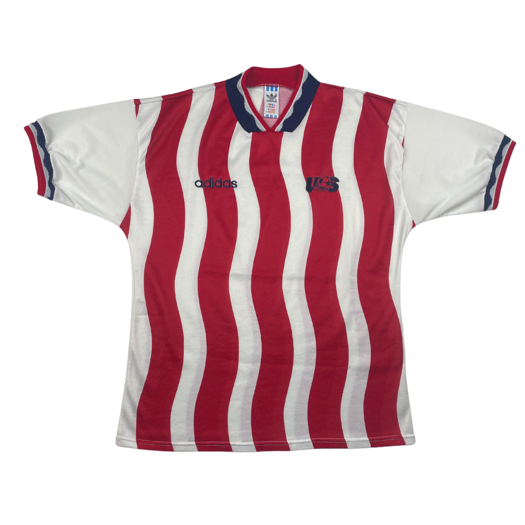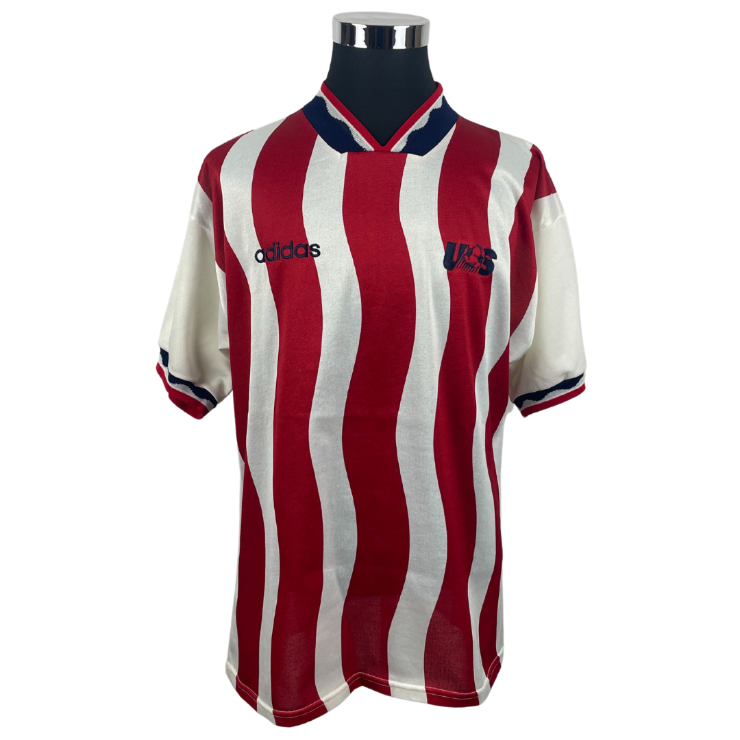 Maillot domicile des USA pays hôte de la Coupe du Monde 1994 qui réalisent un beau tournoi avant d'être éliminés en huitièmes de finale par le Brésil de Romario futur vainqueur de cette 15e édition.