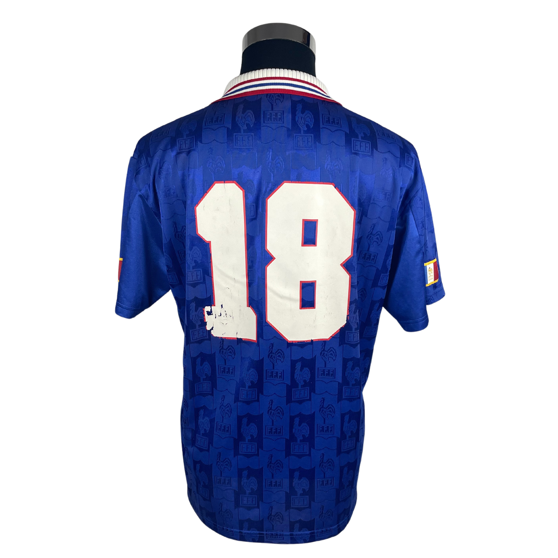 L'équipe de France a réalisé un parcours solide lors de l'Euro 1996, qui s'est déroulé en Angleterre. Dirigée par Aimé Jacquet, elle se hisse jusqu'en demi-finale. En pleine reconstruction après l'échec des qualifications pour la Coupe du Monde 1994. Avec une nouvelle génération de joueurs prometteurs comme Zinédine Zidane et Laurent Blanc, elle s'appuyait également sur des cadres expérimentés tels que Didier Deschamps et Marcel Desailly.