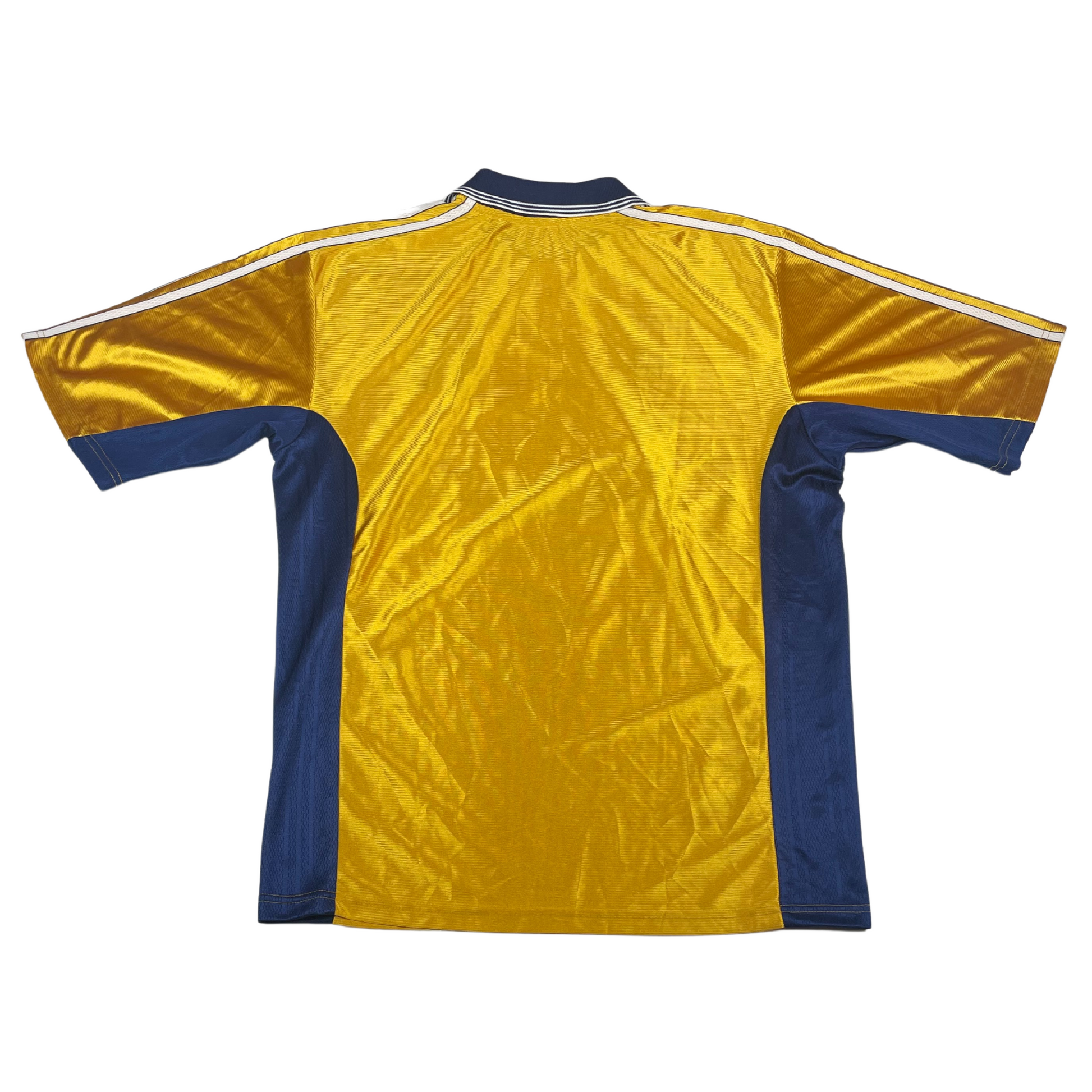 Maillot doré pour célébrer le centenaire du club phocéen qui honore cet anniversaire avec une belle 2e place en championnat et une finale de Coupe UEFA disputée face à Parme.