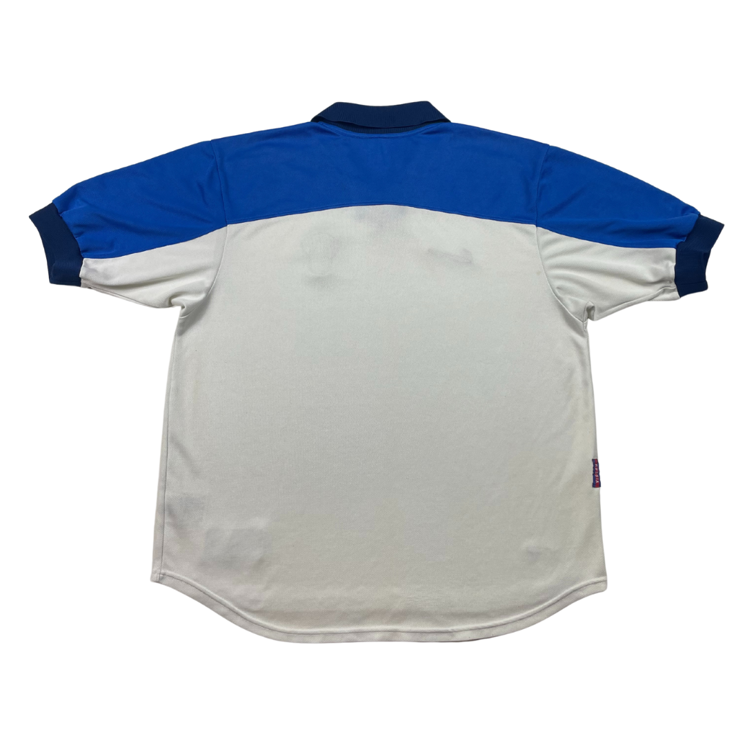 Même en l’absence de certains éléments comme les étiquettes internes — parfois effacées avec le temps ou encore découpées par l’ancien propriétaire pour plus de confort — l’authenticité reste garantie grâce à notre expertise avec un contrôle rigoureux des moindres détails et une comparaison avec les maillots de référence que nous possédons en stock.