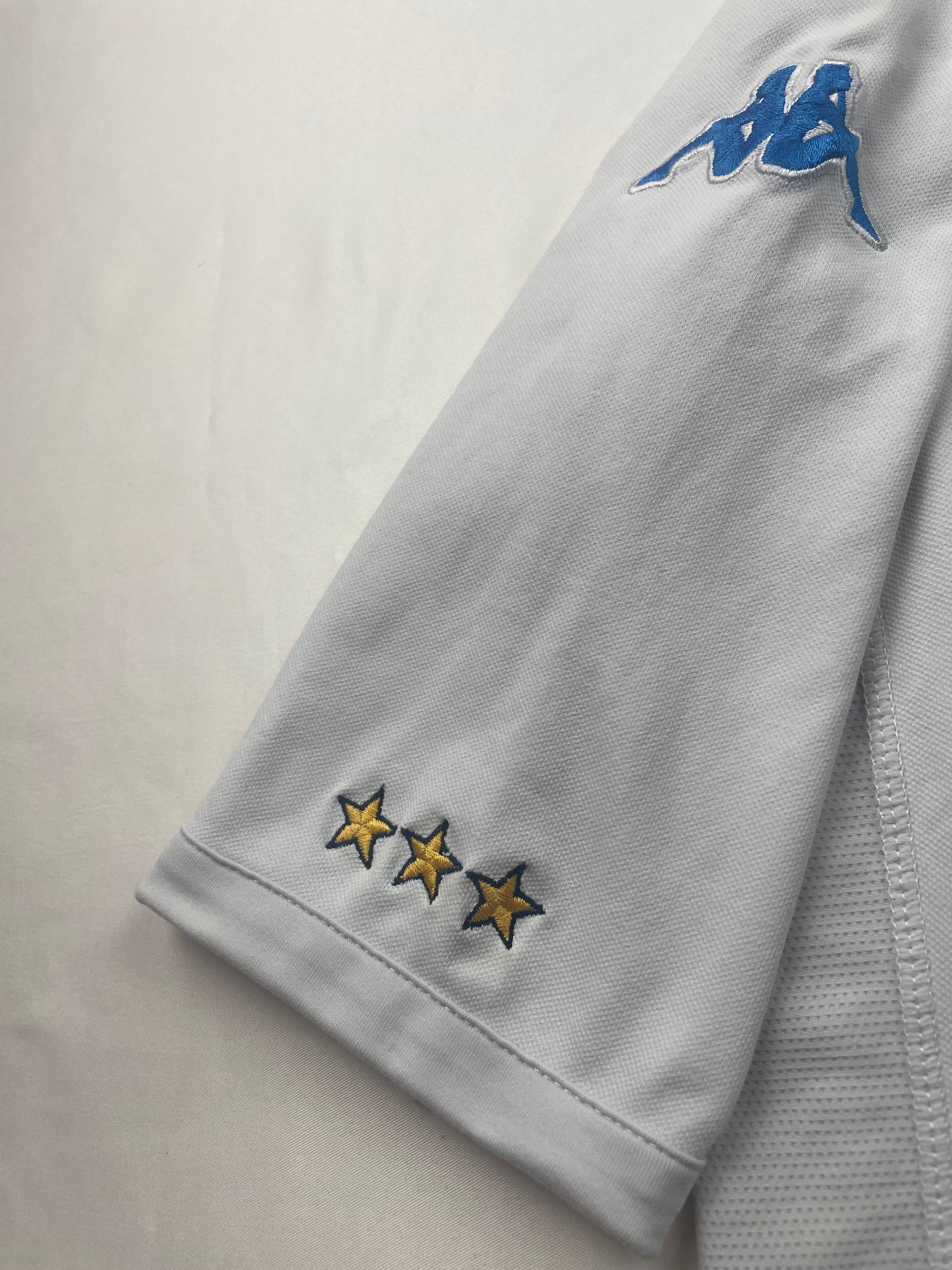 Même en l’absence de certains éléments comme les étiquettes internes — parfois effacées avec le temps ou encore découpées par l’ancien propriétaire pour plus de confort — l’authenticité reste garantie grâce à notre expertise avec un contrôle rigoureux des moindres détails et une comparaison avec les maillots de référence que nous possédons en stock.