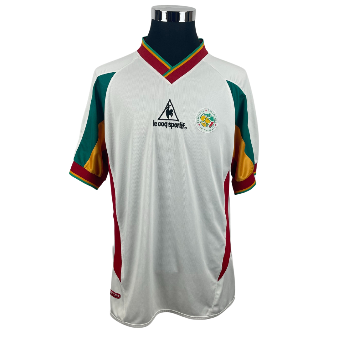 Maillot iconique des Lions de la Téranga avec lequel ils disputent la première Coupe du Monde de leur histoire avec une retentissante victoire d'entrée face à la France. En quart de finale, ils sont défaits par la Turquie à l'issue des prolongations. Sans oublier le brillant parcours lors de la Coupe d'Afrique des Nations quelques mois plus tôt qui a vu le Sénégal s'incliner en finale face au Cameroun lors d'une séance de tirs au but.