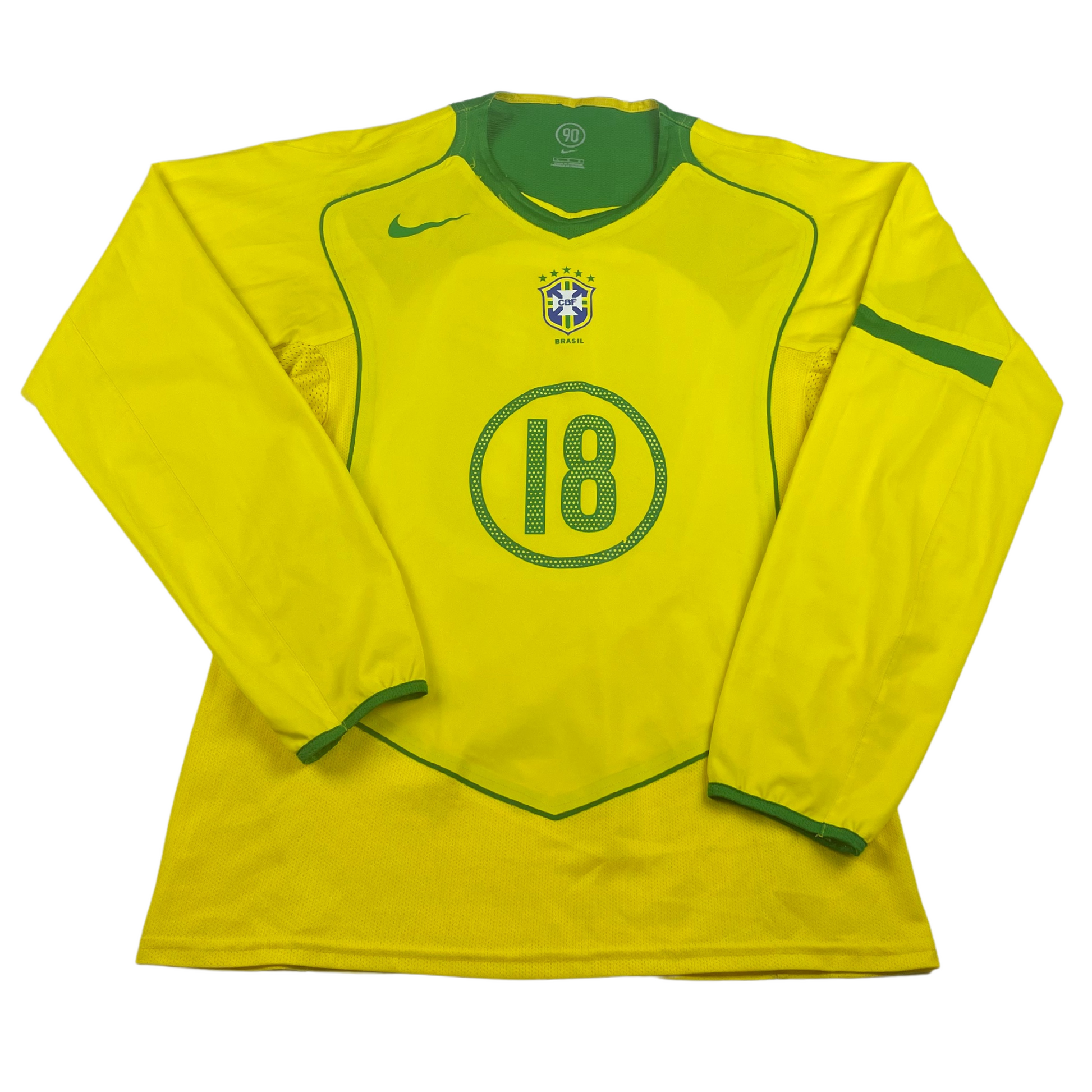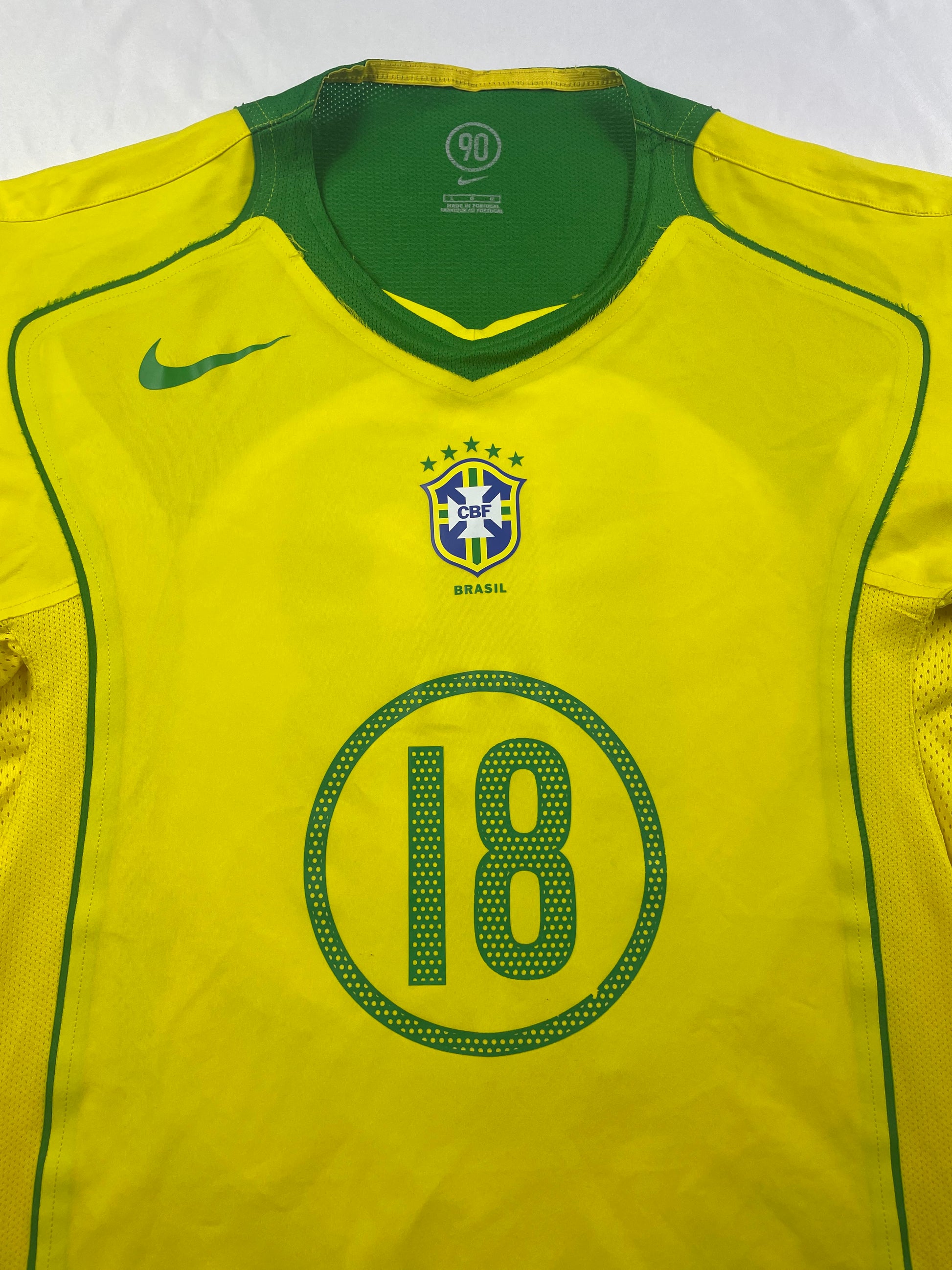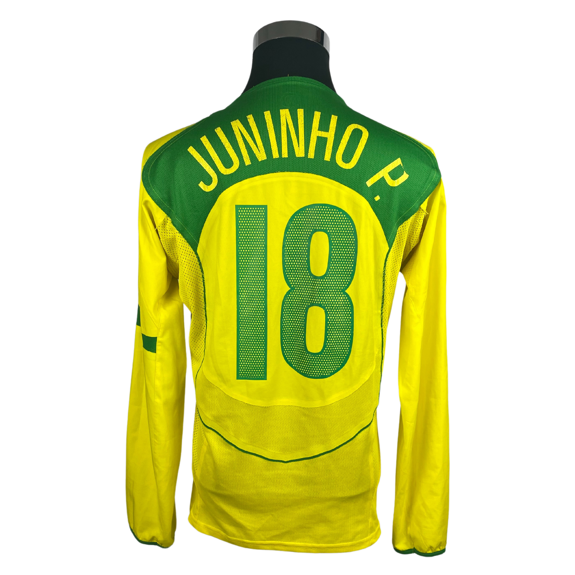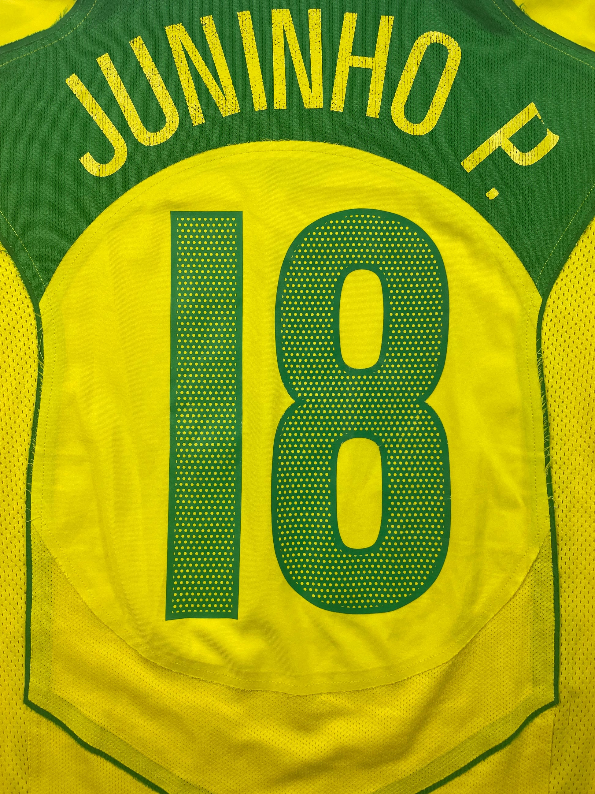 2004 Brésil Home Juninho Pernambucano #18 Match Issue (L)