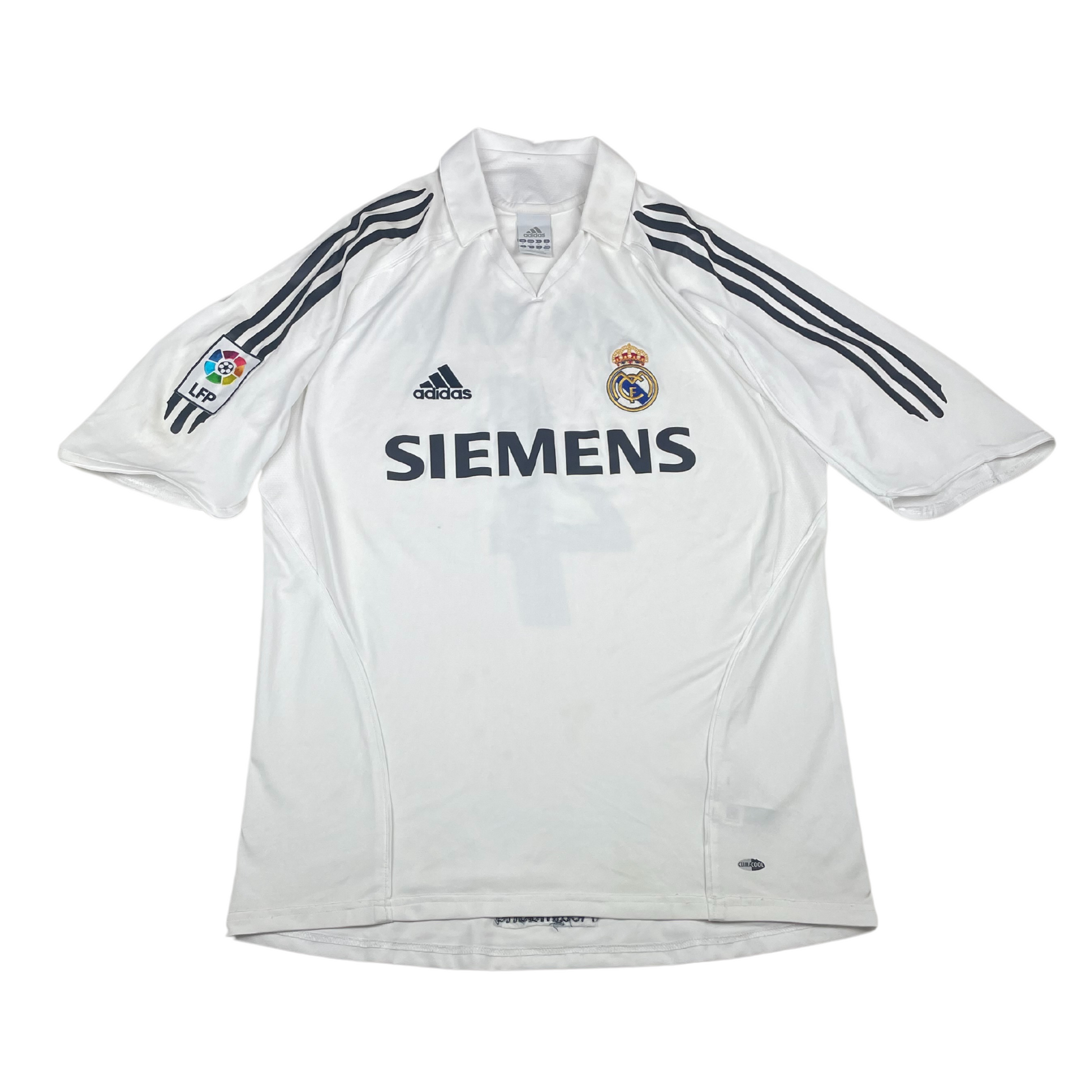 Même en l’absence de certains éléments comme les étiquettes internes — parfois effacées avec le temps ou encore découpées par l’ancien propriétaire pour plus de confort — l’authenticité reste garantie grâce à notre expertise avec un contrôle rigoureux des moindres détails et une comparaison avec les maillots de référence que nous possédons en stock.