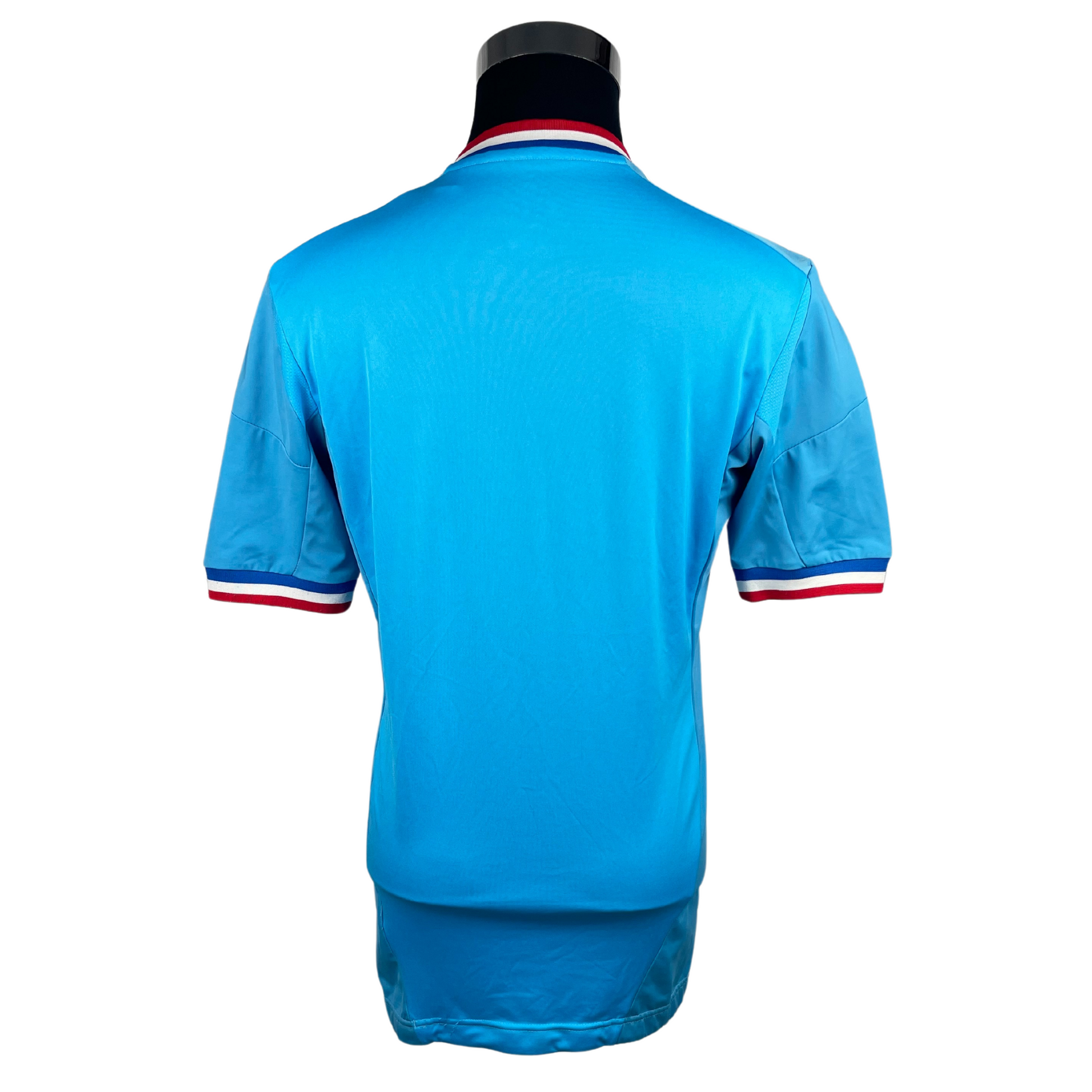 Même en l’absence de certains éléments comme les étiquettes internes — parfois effacées avec le temps ou encore découpées par l’ancien propriétaire pour plus de confort — l’authenticité reste garantie grâce à notre expertise avec un contrôle rigoureux des moindres détails et une comparaison avec les maillots de référence que nous possédons en stock.