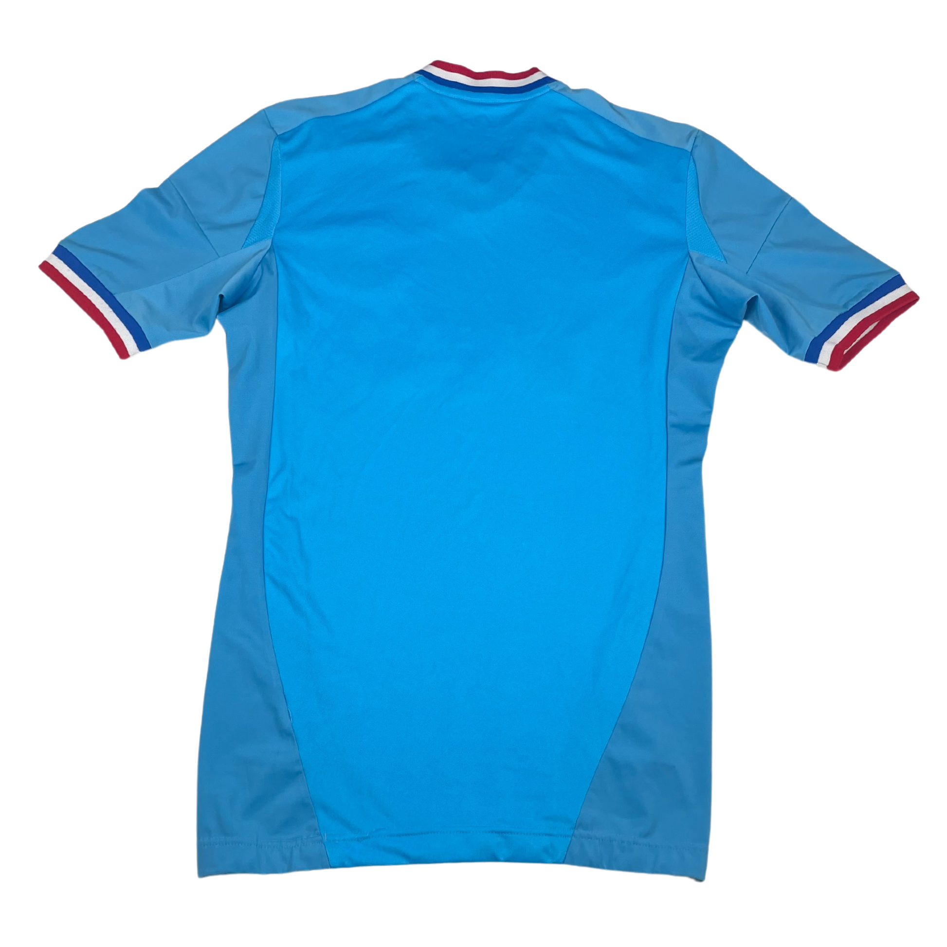 Maillot en bon état issu du stock professionnel avec la tecnologie Techfit. Plusieurs accrocs sont à noter avec notamment des fils tirés.