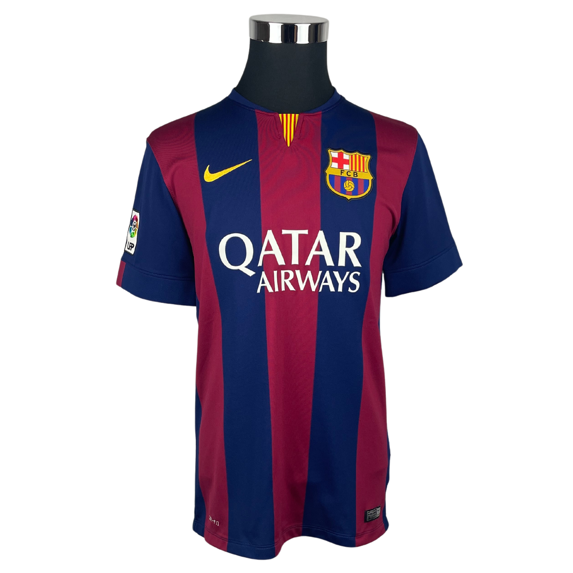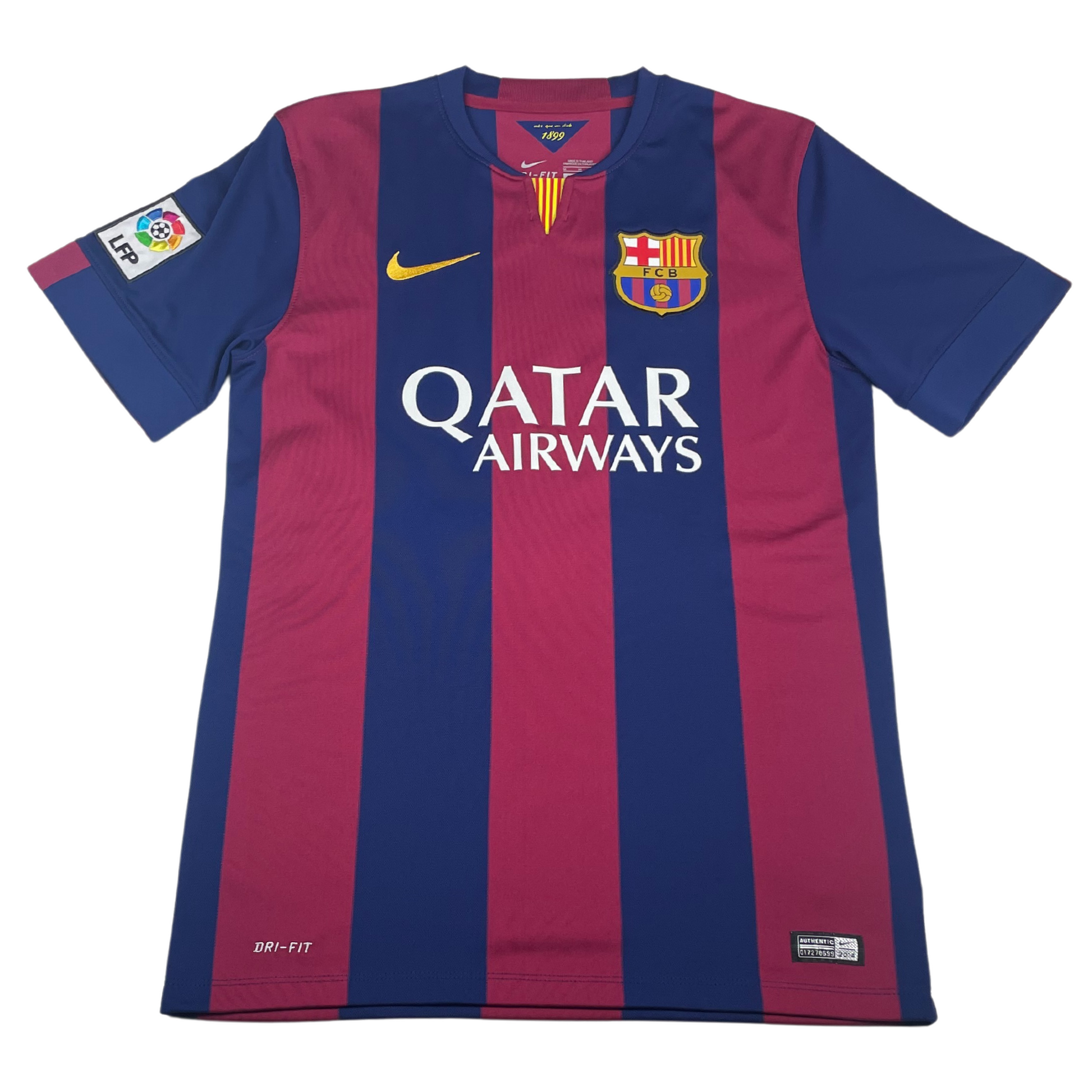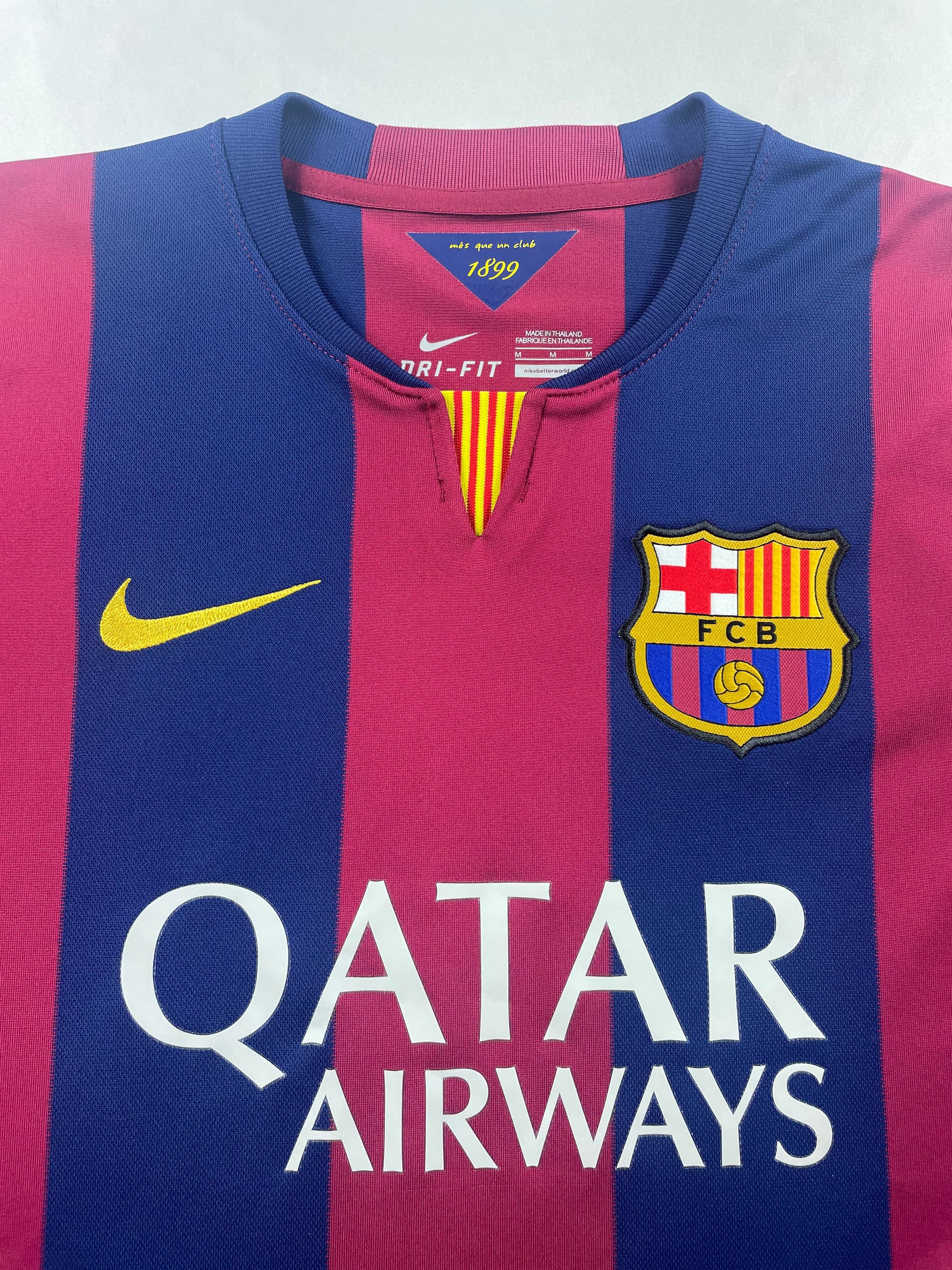 Maillot domicile du triplé Liga-Copa del Rey-Ligue des Champions pour le club catalan emmené par le trio Messi-Suarez-Neymar.